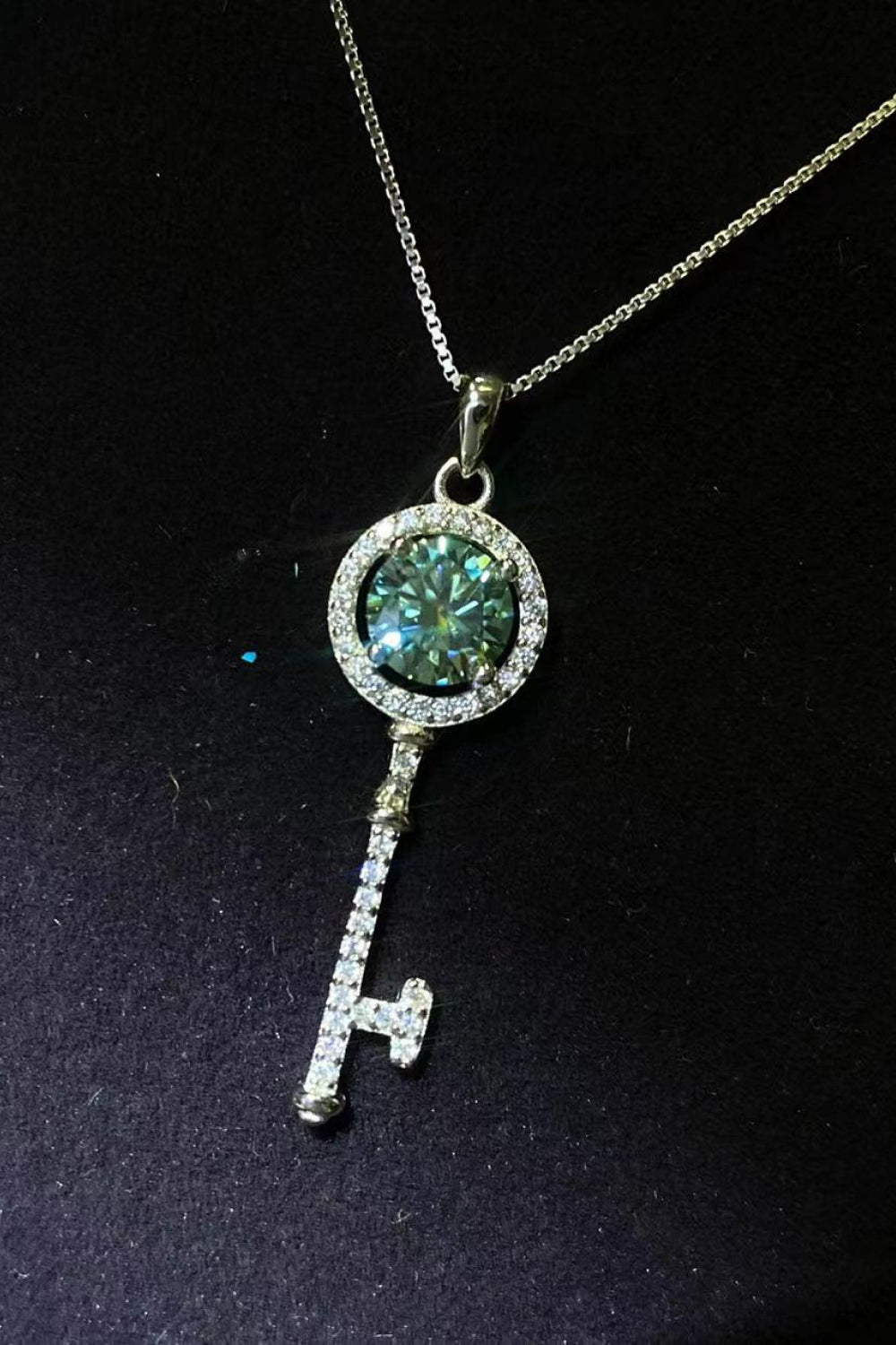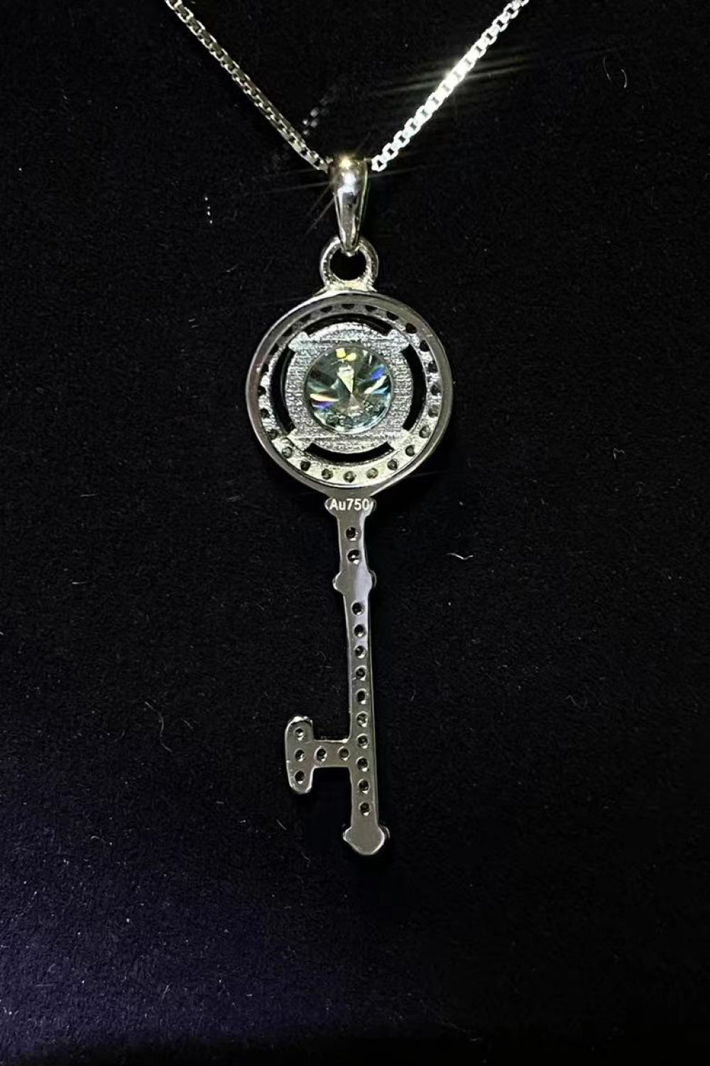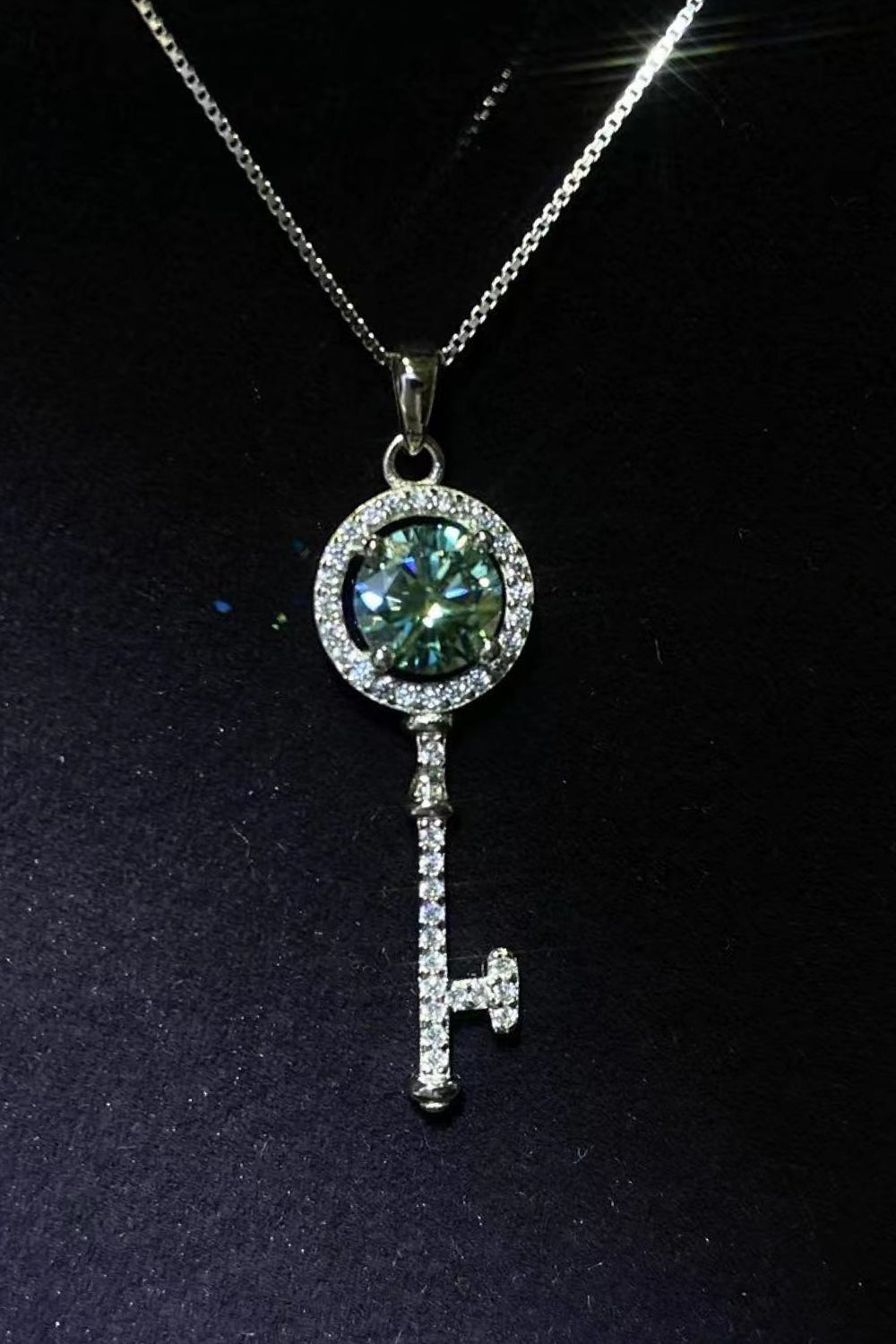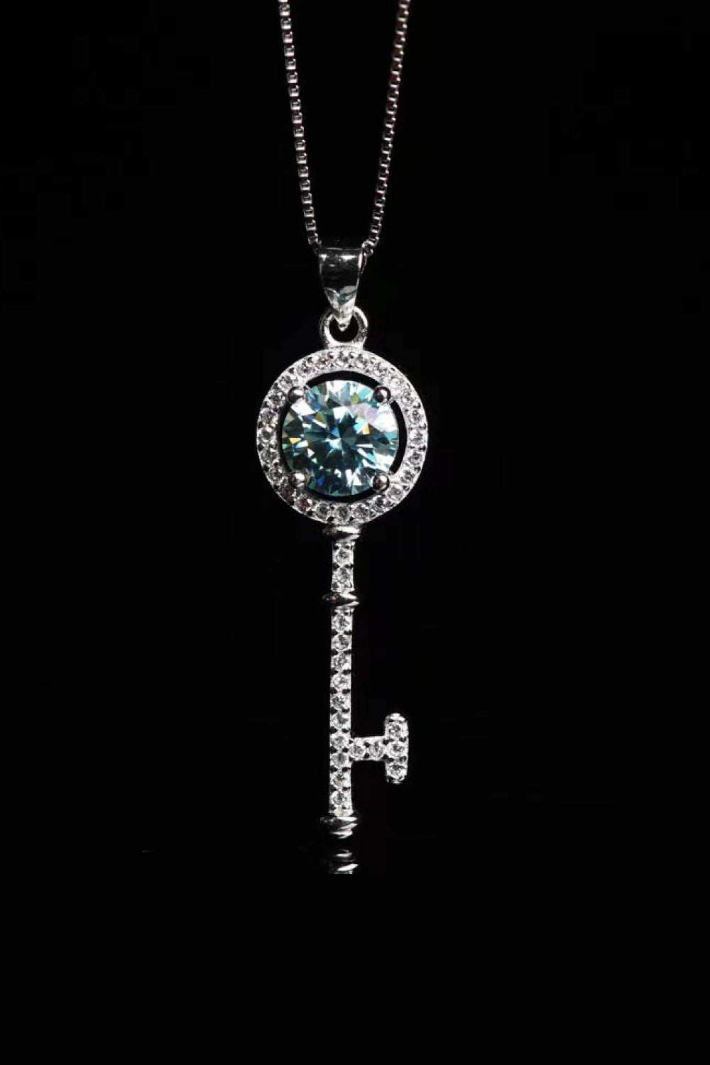 For the woman who loves key pendants, this sterling silver key necklace with 1carat moissanite is a perfect choice. Simple, yet elegant design and 925 sterling silver ensures that it will be a cherished piece by any modern lady.