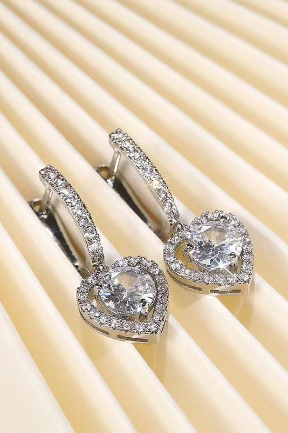 2 Carat Moissanite Platinum-Plated Heart Drop Earrings