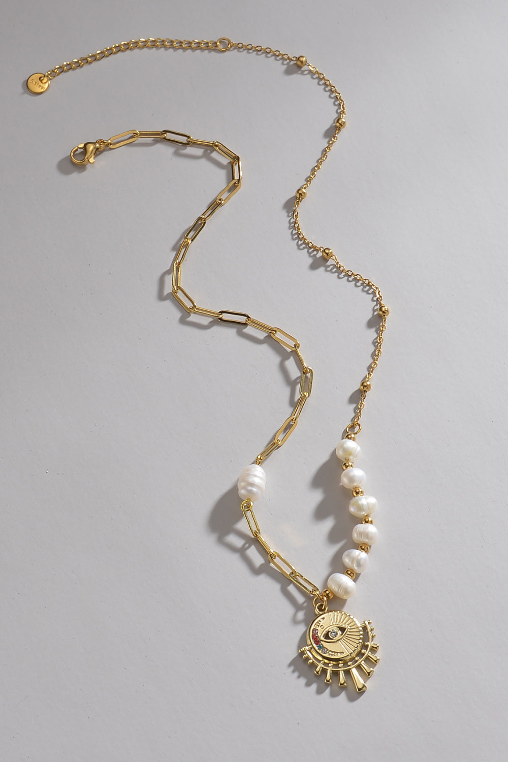Evil Eye Pendant Pearl Stainless Steel Necklace