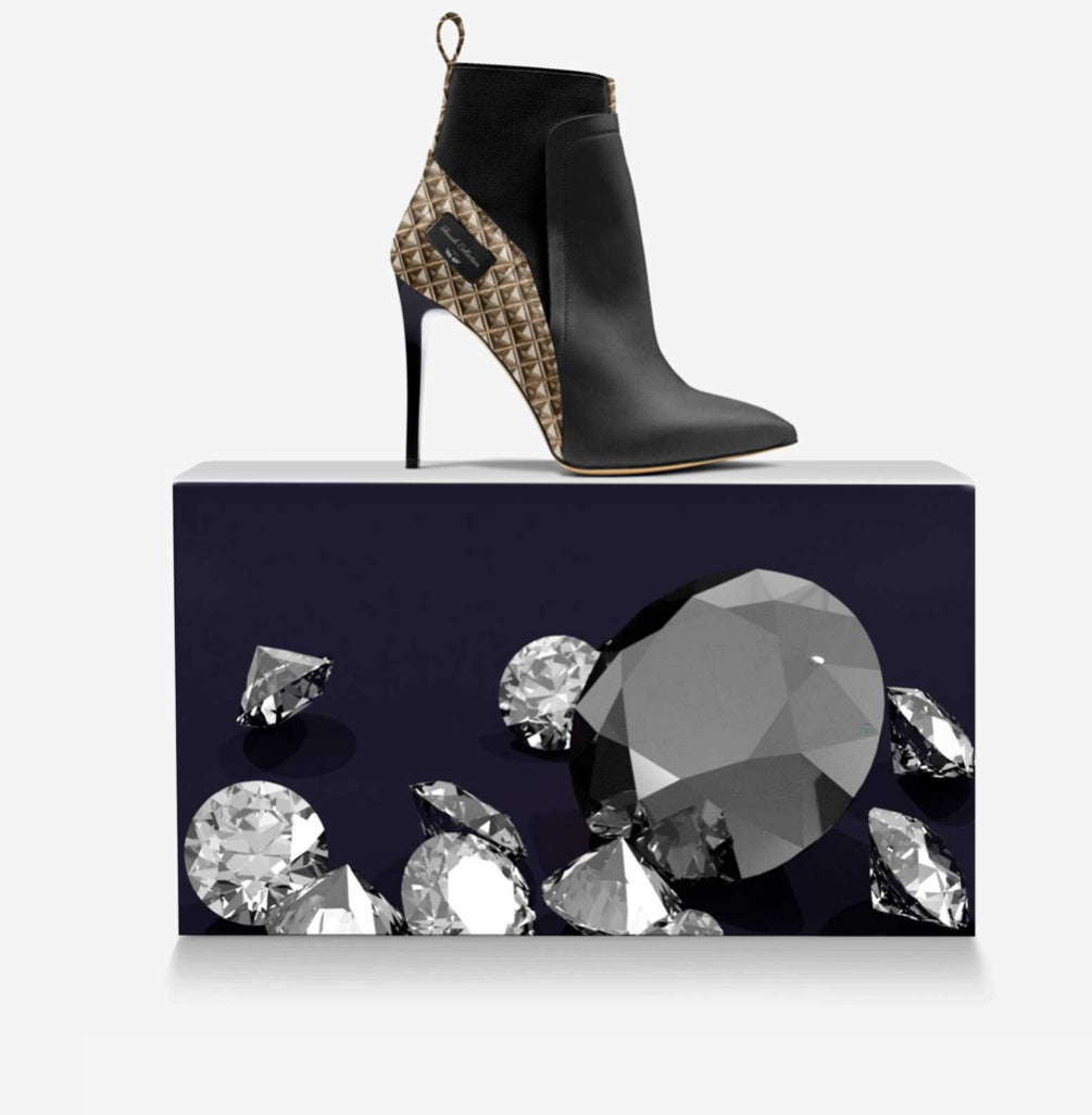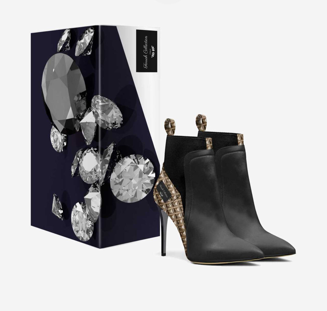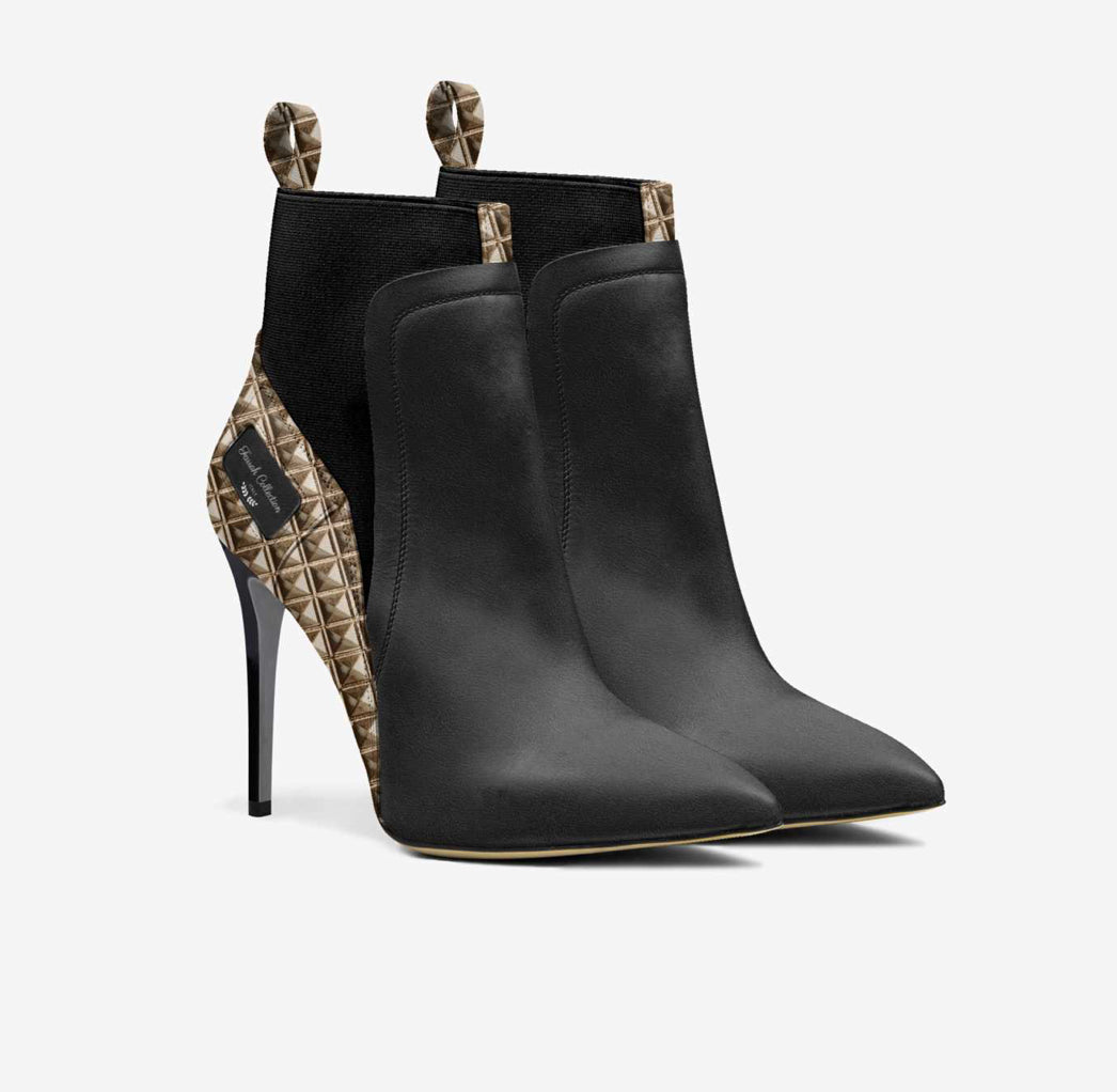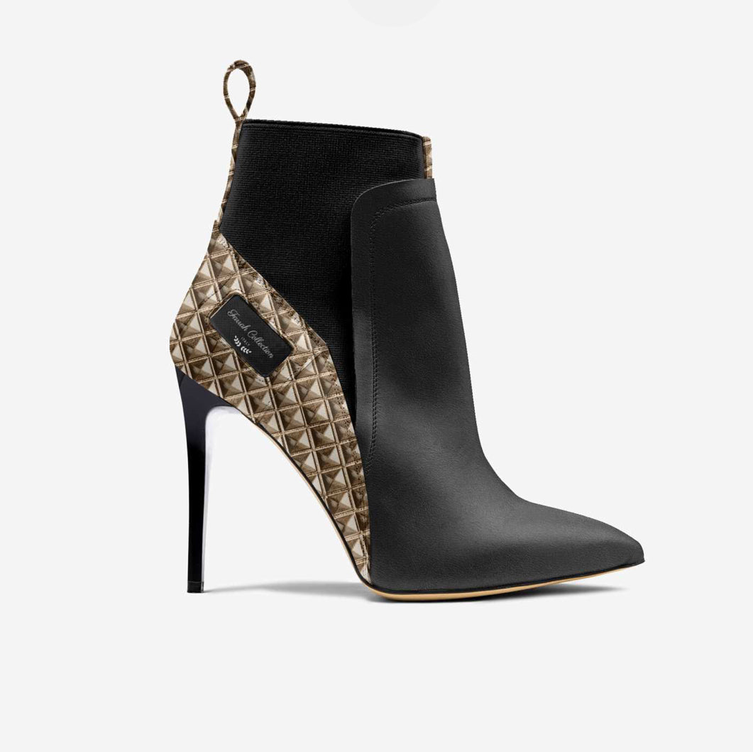 This unique boot combines soft Italian materials with a lace-up front, natural cotton laces, reinforced eyelets, and elastic side panels. It features a 9.9-cm (3.89-inch) materials-covered heel, a black rubber sole