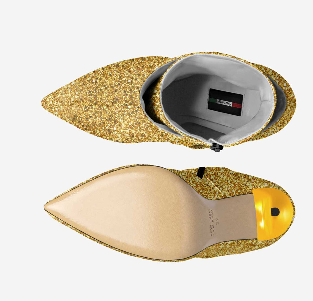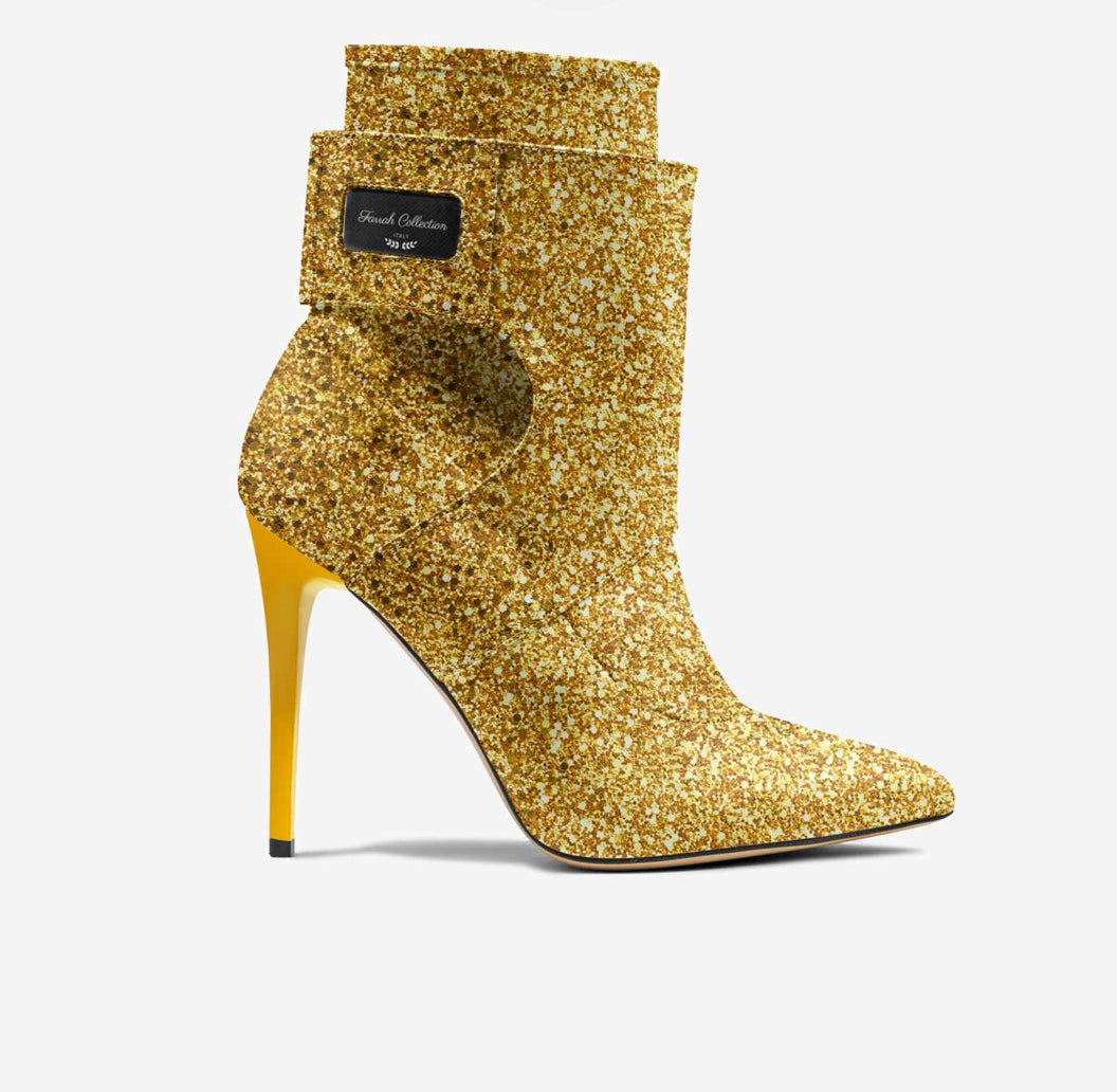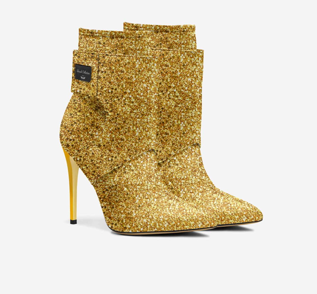 This boot’s futuristic design features artistically overlapping material layers. The 10.5-cm (4.1-in) razor-sharp stiletto heel is balanced with a unique panel overlay.