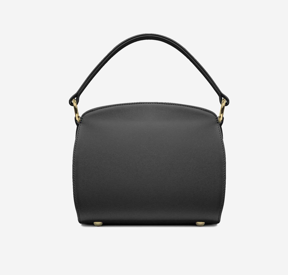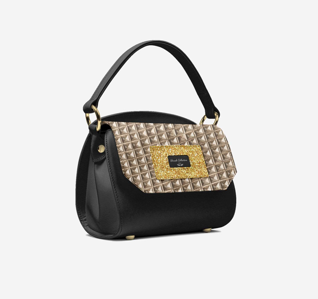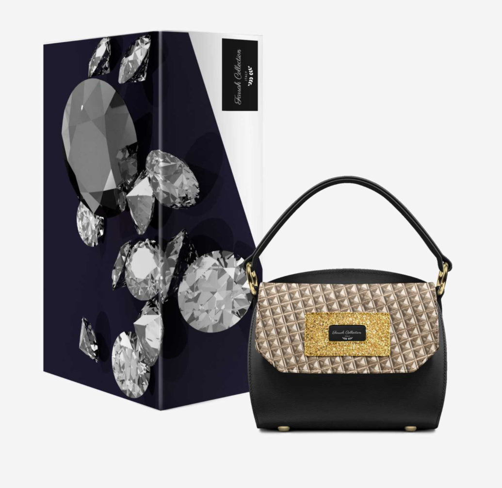 A luxury, elegant fashion bag designed for practicality and elegance. It features a trunk shape with a square flap, embossed logo, and hidden clip-on button, made from high-quality materials
