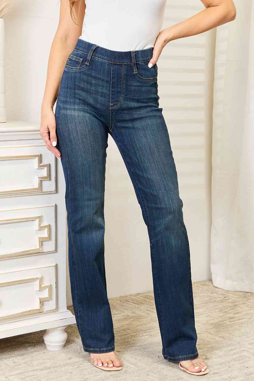 Judy Blue Full Size Elastic Waistband Slim Bootcut Jeans